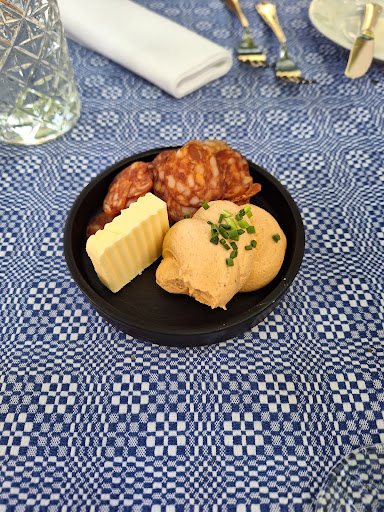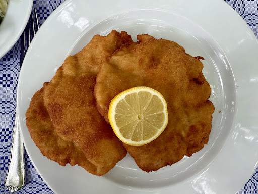 Read moreEine Stätte voller Gegensätze. Am Empfang der hier mehrfach erwähnte korpulente Kellner, der den Gästen mit seinem rustikalen Charme wohl Appetit auf mehr machen soll? Kaum Platz genommen, umsorgt uns jüngeres, zuvorkommendes Personal in dem lauschigen Gastgarten. Auf der Speisekarte wird einleitend erwähnt, dass auf Qualität der Herkunft und Regionalität großen Wert gelegt wird. Und das schmeckt man auch. Die Getränke und das Essen sind vorzüglich, das Fleisch sehr zart (Lamm u. Kaninchen) und die Beilagen sehr aromatisch. Irritierend dann der an die Kette gelegte große Hund hinter unserem Tisch und die Gemälde im Gang zum WC, die Hinrichtung, Todesurteil, Duellieren u. Töten abbilden. Essen 5 Sterne, Personal am Tisch 4 Sterne, der Rest 3 Sterne