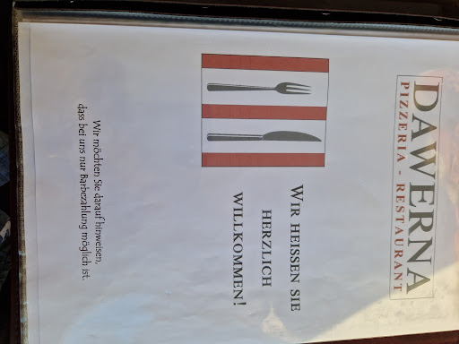 Read moreIch war mit meinem 5 jährigen Sohn hier essen. Wir wurden sehr herzlich begrüsst, mein 5 jähriger hat sich mega wohl gefühlt und man hat ihn sehr lieb behandelt. Um die Wartezeit aufs essen zu verkürzen brachte man uns ein Spielzeug und mein Sohn war total zufrieden. Auch das Essen hat mega gut geschmeckt. Er hatte eine Pizza mit Schinken, Pilzen und Mais und ich eine Calzone. Wir konnten den Rest, den wir nicht mehr geschafft haben, ohne Probleme mitnehmen und das Preisleistungsverhältnis ist mehr als Fair. Auch das nur Barzahlung akzeptiert wird, finde ich ganz toll. Mein Sohn hat zum Abschied noch ein kleines Toffee erhalten welches er auf dem Nachhause Spaziergang mit hochgenuss gegessen hat. Also rundum Top Restaurant und auch mein Sohn sagte es wäre die beste Pizza seit langem gewesen und er würde der Pizzeria Dawerna 5 Sterne geben. Vielen Lieben Dank das wir so ein tolles...