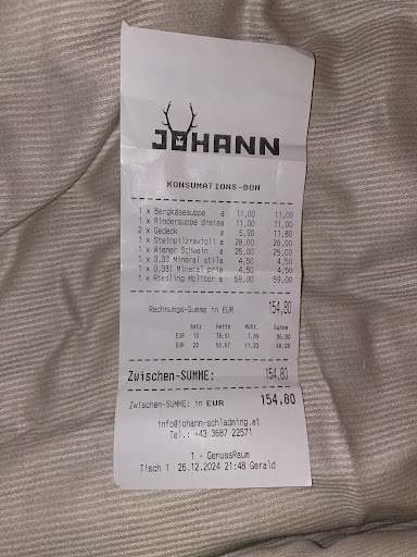 Read moreWe had dinner in the restaurant, because it looked very nice and we were staying at the hotel. It was one of the best decisions of the evening. Staff was helpful and kind. They brought blankets to us, because the weather was getting cold. The appetizer, main course and dessert also show that the chef cooks very skillful and excellent quality. We had one of our most delicious dinners here: Cream of apricot (with pumpkin seed oil) was amazing, we never tried the pumpking seed oil to soup Corn chicken breast (apricot, changerelle muchrooms) - it was amazing taste #Johann lamb hip (chick-pea, bell pepper, pea, carrot, mint) - the lamp melted in our mouths #Johann signature ice cream (vanilla pumpkin seed ice cream, balsamic, strawberry, nut cookie) - This dessert was the best ice cream, what we taste. The price of the dinner was not cheap, but we were completely satisfied with the flavors and would be happy to try the new...