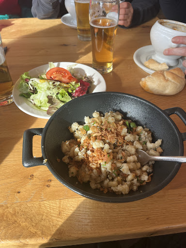 Read moreLeider absolut nicht empfehlenswert. Haben eine Stunde auf die Getränke gewartet, das Essen kam nach insgesamt 1,5 Stunden aber war unvollständig. Es kam dann die Ansage, dass der Küchenchef soeben entschieden hat, dass die nächsten 90 min keinerlei Essen mehr serviert wird, selbst wenn es schon bestellt wurde. Zu diesem Zeitpunkt war es kurz nach 13 Uhr und die Bude war voll mit Leuten. Das Essen, welches kam hat leider nach nix geschmeckt. Der Apfelstrudel war direkt aus dem Kühlschrank und die Vanillesoße gerade so lauwarm. Das Personal war total überfordert, unhöflich und hat weder eine Maske getragen, noch die 2G Nachweise sehen wollen. Wir haben deswegen unser serviertes Essen schnell heruntergewürgt und sind dann weiter. Die Kellner haben auch nicht gefragt, ob oder wie es geschmeckt hat, sondern haben direkt abgeräumt und wollten uns schnell loswerden. Das nicht servierte Essen wollten sie erst auch noch...
