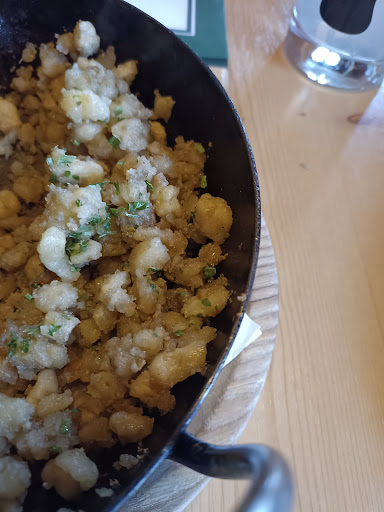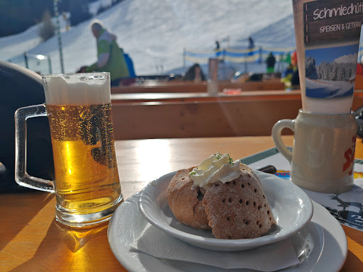 Das Servicekonzept ist etwas komisch. Man bestellt innen, bezahlt, und bekommt eine Nummer die dann ausgerufen wird. Dann kann man sein Zeug mit Ski Schuhen selbst raus tragen. Da draußen keine Speisekarten sind, kann man sich auch schwer absprechen und es müssten alle normalerweise rein um zu wissen was man will. Platz freihalten ist dann problematisch. Das Essen ist ganz okay, hatte aber schon bessere Kaspressknoedelsuppe in anderen Hütten, die auch noch günstiger war. Somit fällt meine Beurteilung hier eher...