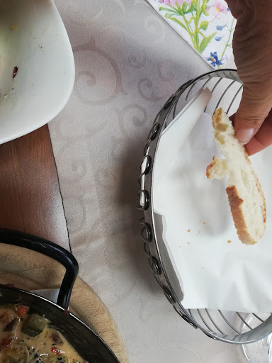 Bin aufgrund der google Rezensionen hierhin. Es sollte wohl ab 10 h geöffnet haben durchgehend. Ich kam nach 15h an und fragte ohne Reservierung nach einem Tisch. Die Dame am Empfang meinte das ein Essen wieder ca. In ner halbe Stunde möglich sei, für mich unverständlich weil durchgehend geöffnet. Ich meinte das dies kein Problem sei dann trinke ich so lange was. Das Restaurant war ausser zwei besetzten Tischen leer ich durfte nachdem ich die Theke abgelehnt hatte mir einen Tisch am Fenster aussuchen. Durfte das essen schneller bestellen, nahm die Garnelen Pfanne. War fein und viel incl. Salat und Brot lt. Karte. Die Sosse war aber eher eine Suppe und das Brot war in hauchdünnen Scheiben geschnitten. Habe nachgewürzt. Brot etwas sparsam, wenn man es kleinlich betrachtet. Die männliche Bedienung brachte es, es fehlte Besteck, Kerze wurde nur an anderen Tischen angezündet. Bestellte einen Hauswein bei der männlichen Bedienung die dann etwas schnippig nachfragte "ja rot oder weiß, das stand nicht auf der karte, daher war ich so ähm moment dann Riesling. Es stand dann was anderes auf der Rechnung. Ich wollte nachfragen als ich schon bezahlt hatte, stand an dem Empfang und sah das ich ne Frage hatte. Er hat mich erst ignoriert biss ich sagte das ich ne Frage hätte. Hab dann auch nochmal nachgefragt warum die Küche nicht durchgehend geöffnet war, die Dame meinte sie hätten früher auf gehabt als sonst und daher die Pause, mal was essen und so?! Aha... Okey. Insgesamt nicht willkommen Gefühl und Rechnung nicht übereinstimmend mit Bestellung. Nochmal würde ich nicht dorthin. Männliche Bedienung könnte freundlicher sein. Zog ne Schnute und schnippig war er auch ein Bissl. Insgesamt Service nicht gut. Essen 3,5 von 5 wegen Brot, wenig gewürzt obwohl laut Karte etwas scharf angekündigt und der Suppe anstatt sosse. Satt bin ich auf jeden Fall geworden.. Beilagensalat...
