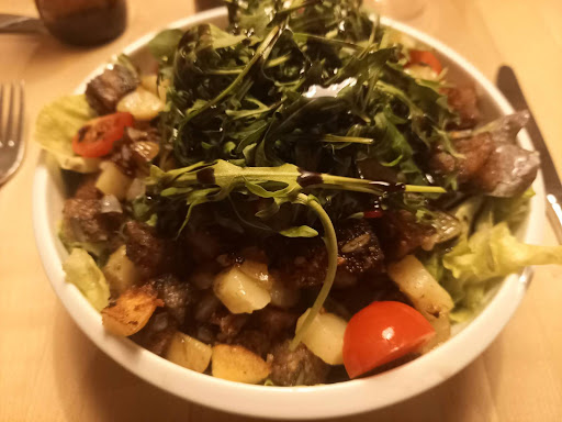 Der Service war sehr aufmerksam. Das Ambiente urig. Leider hatte der Raum einen leichten Geruch von einer ehemaligen Raucherkneipe, den man vermutlich auch durch das viele Holz nicht wegbekommt. Gute Parkplatzmöglichkeiten....