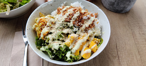 Read moreVery yum, hand made healthy and delicious food, small place with a choice of salads, baked potatoe or pasta. All the ingredients were fresh.. Makes your food in front of you. They have fresh made juices also. My girlfriend and I both got big salads. She got grilled chicken and onions over greens. I got an amazing bacon and grilled mushrooms with a fresh grated cheese over mixed greens. The dressing seems homemade and is also very good.