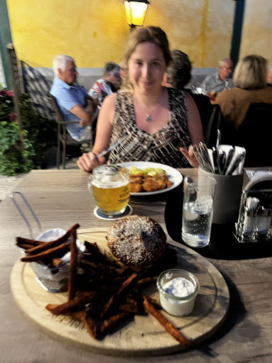 Read moreMe gustó la hamburguesa que se pidió mi novio, el dressing muy rico y las batatas con el dressing de ajo y yogurt muy rico. Mi schnitzel cordon bleu de buen tamaño estaba un poco seca y le faltaba más queso, me hubiese gustado una salsa en vez de la mermelada pero de todas formas estuvo ok. Las papas tenían muy buen sabor, me gustaron mucho. Y la cerveza grande tirada de la casa también muy bien. 😊 La amabilidad de las chicas, especialmente la encargada que nos esperó siendo q cerraban la cocina 15 minutos antes. Hablaba bien inglés. Aparcamos a la vuelta. Nos sentamos afuera con las otras personas, lo único malo es que algunos fuman pero al cambiarnos de lugar pude respirar aire puro de nuevo y lo disfruté. Gracias por todo....