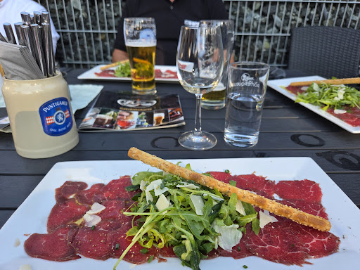 • Fischpfandl - schlammiger Fisch, „Risotto“ war mehr ein verkochter Reis als sonst was, Safransoße war gut, generell in Ordnung • Rumpsteak - sehr sehr hartes Fleisch, vermutlich eher Suppenfleisch, die Bohnen waren wässrig, die Pommes ok • Pariserschnitzel - trocken, ungesalzen, hat im Prinzip nach nix geschmeckt • Burgi Burger - geschmacklich hervorragend, Fleisch sehr lecker, selbstgemachtes Burgerbrot