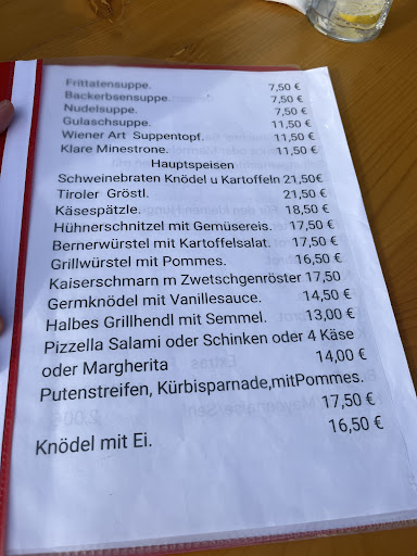 Read moreIch bin seit Jahren immer wieder hier zufrieden gewesen. Eine super Lage, sonnig, Viecher fuer die Kinder, nettes Servierpersonal, anständige Küche. Die Lage ist noch immer gut (2022). das Personal spricht auch deutsch und die Tiere kann man noch immer fuettern. Es ist jetzt Selbstbedienung mit Buzzern, und glaublich die ganze Karte (mit Ausnahme des Salates) ist Convenience. Das Huehnerschnitzel das ich hatte war mit Abstand das widerlichste Stueck Fleisch meines Lebens und definitiv aus Hühnerfleisch zusammengefügt (entweder Gissinger oder Gierlinger, zumindest 65% Hühnchenfleisch :)). Wenn das eine Huette sein soll wo man sich wohlfuehlt? Nein. Bleibt fern, es gibt bessere...