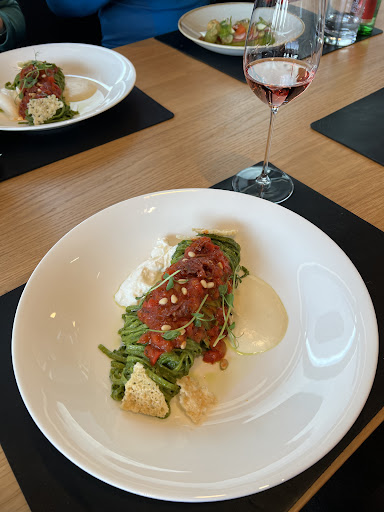 Originally went to the top of the mountain to the iceQ restaurant near the 007 elements which had no vegan options and took us over 30 minutes to just get drinks there. so we came down to the middle mountain and found Falcon with no pre conceived notions and we are so happy we did. We arrived at a not so busy hour and got really good seats with an amazing view. We’ve eaten at numerous Michelin star restaurants before and preferred our experience and food here compared to some others. They happily modified a few dishes to be vegan for us without stress or confusion and it’s was really good. A nice balance of a full hearty meal with amazing presentations. The Espresso martini was lit. Our waitress was very nice and knew when to come by to check in on us with us ever needing to search her. One of our best eating experiences in Austria. The price to quality ratio is unmatched to anything else we had in the area. With that being said we didn’t come as skiers or as a family with kids so maybe this is a different experience than what some people are looking for (something more casual) on the mountain but again it’s a steal for the price and quality! And worth...