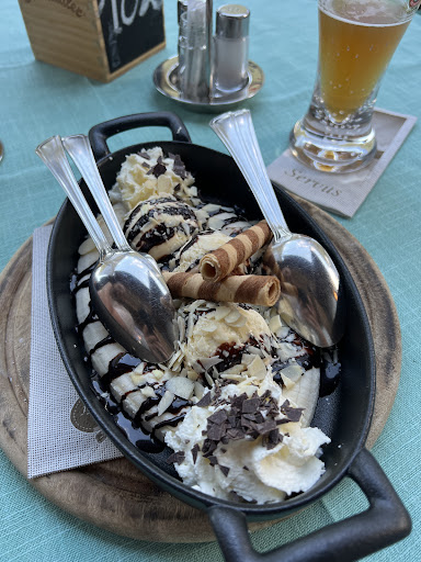 Pros: This place exudes an incredibly authentic Austrian "Bauden" atmosphere, making you feel like you've stepped into a piece of Austria's culinary heritage. The menu boasts a fantastic selection of traditional Austrian dishes, ranging from schnitzel to kaiserschmarrn, käsefondue, and lamb. The lamb, in particular, was exceptional. The restaurant offers a wonderful atmosphere that complements the authentic Austrian experience. The service here is top-notch. The waitresses are friendly, welcoming, and efficient, providing excellent service. The interior decor reflects the essence of authentic Austria, enhancing the overall dining experience.