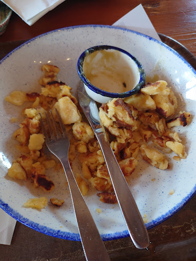 They have a good Wiener Schnitzel over the whole plate but with cold and old french fries, traditional Kaiserschmarren, Apfelstrudel, OffenKartoffel with vegetables etc. Twice it happened to us that the staff only made us a beer and not a radler which we ordered and payed. I hope that in the future they will also think about those who have a problem with lactose and will offer more lactose-free meals or lactose-free or alternative coffee milk. I know that it's the Alps but its pretty expensive here for the quality. You can pay...