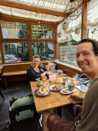 Read moreEen leuk concept , lekkere koffie of thee met heerlijke zelfgebakken gebak (kuchen) erbij een gezellige uitstraling binnen waar ook nog mooie dingen te koop zijn zoals heel appart servies of kleding voor de hele kleintjes en nog veel meer , en met mooi weer is er ook nog de mogelijkheid om op het terras buiten te zitten , dus zeker een...