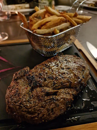 The food was modern, tasty and the portions reasonable. The salmon was juicy with nice Asian fusion taste, ribs were tender but would have benefited from more bbq sauce, the filet mignon juicy and tasty. The burger was good. The service was fine. However, three of us wanted to order the salmon, but they were out of salmon, which is disappointing at a classy restaurant with limited selection of dishes. The waiter offered no excuse or a gesture of being sorry, just asked us to select something else. The atmosphere is modern, lighting was comfortable and cozy, but sound insulation/noise control could be improved (you heard a lot of noise from other tables). The fireplace, which is in a very prominent area at the entrance of the restaurant, only had a stash of ashes both times we came there, no fire even though there was plenty of wood...