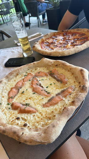 Modern decorated restaurant. Starters looked nice but missed seasoning. Fortunately the olive oil and balsamico were brought to us. Tomato salad included bit too much onion for my taste, could have mixed it with some other veggies…. The pizza was nice with peperoni and onions and some peppers. The cordon blue was huge and tasty/crispy. Also the steak was well prepared. The last two mentioned dishes could well be shared by two smaller eaters. Note that the prices for the main dishes are more expensive than in other restaurants in the area, 35 eur for a steak. Pizzas were...
