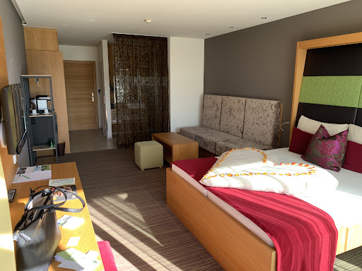 Read moreMio marito ed io riteniamo questo hotel sufficiente per essere all’altezza di un 4 stelle secondo la media austriaca, ma non superiore.|Arrivati dopo 12 ore di viaggio, con i bagagli per quasi due settimane in macchina, non ci viene proposto né aiuto né carrello, veniamo condotti alla camera, Doppelzimmer Seeblick. |L’impressione in camera è di un enorme spazio vuoto, poco accogliente, arredo ridotto all’essenziale, la chaise longue visibile nel video di descrizione della camera non è disponibile, nessun cassetto, pulita nonostante la moquette. Il cambio di asciugamani è quotidiano. Ci viene proposto dietro nostra richiesta un cuscino alternativo. Il vero problema sono i materassi, piuttosto bassi ed infossati in vari punti, inaccettabili per un tre stelle. Bella la vista sul lago dal balcone attrezzato. Sembra essere il lato più tranquillo, a meno del rumore delle eventuali operazioni di manutenzione della pista di ghiaccio, che però non cominciano prima delle 8 e terminano verso le 22.|Gli accappatoi di qualità sono disponibili solo in misure M ed XL. Quello M per me era troppo lungo e mi è stato dato un accappatoio per bambini in spugna leggera un po’ piccolo, inadatto a rilassarsi all’aperto dopo la sauna. Non sono mai stati cambiati.|L’accesso alla palestra con cui l’hotel è convenzionato è esterno. La tessera fornita dall’hotel in base all’altezza del cliente serve anche alla regolazione automatica di alcuni attrezzi, ma non tutte le stature sono disponibili.|I tavoli del ristorante sono poco illuminati. Il personale di sala è gentile e cordiale. In tutte le pietanze è presente troppo pepe, che dobbiamo entrambi evitare per vari motivi. La prima sera non ci viene proposto nulla di alternativo, ma veniamo invitati a scriverlo sul menù la mattina a colazione. Ciononostante per parecchie altre sere il pepe è presente in quasi tutti i piatti, fino alla fine del soggiorno, nonostante le nostre rimostranze e lo spiacevole imbarazzo del personale di sala, assolutamente impotente nella soluzione del problema. I piatti si presentano bene, la cucina è creativa e non tradizionale, ma non sempre il risultato è gradevole. Ottimo il fatto che ci si possa presentare a cena fino alle 20:30 ed essere serviti senza fretta. La durata della cena varia dall’ora e mezza alle due ore.|La colazione include una menù di piatti da ordinare al momento.|Anche le zuppe del buffet a pranzo contengono pepe. Ottimo lo strudel.|Lo spazio del bar è sottodimensionato per il numero di camere di cui dispone l’hotel , sedute abbastanza scomode, si presta poco a socializzare tra ospiti. Una sera abbiamo chiesto solo due tazze di acqua calda, essendo la stanza sprovvista di bollitore, ma siamo stati invitati ad accomodarci, ci è stata servita l’acqua calda in due servizi da tè, e ci sono stati addebitati ben €9,80 di acqua calda ben servita.|Anche l’area benessere è adeguata ad un 4 stelle, non di più. Rimane spesso molta acqua sul pavimento dell’area riservata agli adulti, bisogna fare attenzione a non scivolare. La sauna esterna purtroppo non è panoramica e l’acqua della piscina secondo me è un po’ freddina per potersi rilassare nell’ idromassaggio.|L’hotel ha un parcheggio privato, chiuso con sbarra, praticamente inagibile a causa della neve non gestita regolarmente. I posti pubblici gratuiti servono, oltre gli ospiti dell’hotel, i clienti della palestra, di un ristorante vicino ed i fruitori della pista del ghiaccio.|Il deposito per gli sci è ampio e ben organizzato, vicino ad un paio di parcheggi dedicati alle operazioni di carico e...