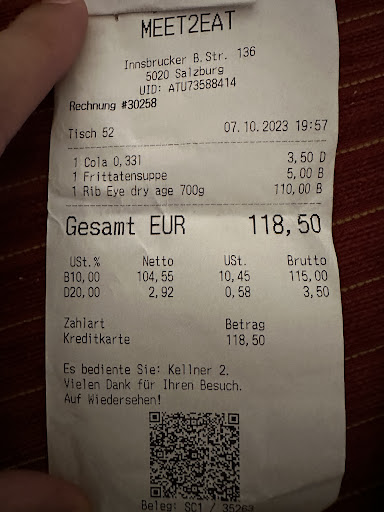 Read moreThere was 2 men in the restaurant a man & his son I believe that he was the owner both are very welcoming & nice so I did ask the waiter about his recommendation of the best steak they had , he got me three steak selections & he recommended the Ribeye for two & this was the most expensive item he got in the menu 700 gm cost 110€ , I waited for 45 minutes & I asked why it’s taking too much time , he replied that it should take enough time to cook Finally I got the order to share me & wife but this was the worst steak I’ve never had in my life I travelled all over the world in the best steak restaurant around the world but I never got that kind of steak it was not chewable at all every piece I eat I can’t chewable it & I put the unchewable pieces aside I asked the waiter ( the owner ) & I show him that I didn’t eat the steak & it’s not chewable but out of sudden he didn’t care what so ever , so I asked for the check & I paid 118€ for the worst steak ever Even the owner didn’t apologize or say anything he just charge my credit card & that it Very bad behavior & he don’t care about the quality of food although he has high reviews but it was my worst experience...
