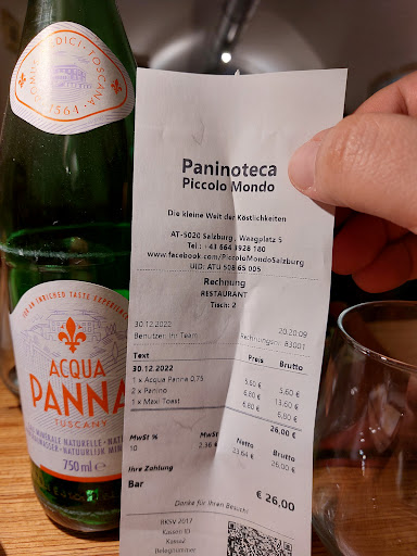 The staff were friendly upon arrival and the food looked good. We ordered a piadina and a salami panino (âŹ8.20 each). My friend enjoyed his panino, but my piadina was disappointing, as the prosciutto crudo had been cooked from reheating. The real issue came at checkout. We asked to pay separately by card, but the cashier was visibly irritated and repeatedly insisted we pay together, saying âŹ8.20 was too little for a card payment. When I insisted, payed, and asked for a receipt, he became even more annoyed and initially refused. My friend also requested a receipt, and the cashier rudely asked why he needed it. When my friend explained it was for reimbursement purposes, the cashier rudely handed over just the card slip, not the official receipt. Obviously...