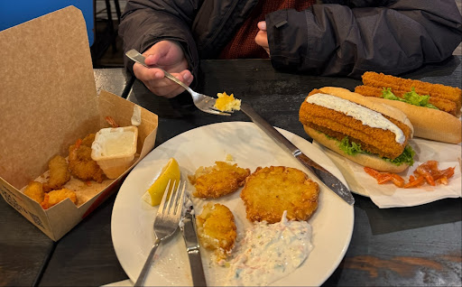 DA EVITARE . Bella idea e concetto interessante a livello di marketing. Si presenta come un fast food a base di pesce. Bello il posto in pieno centro...peccato che sia un posto assolutamente da evitare, lo sconsiglio vivamente. Il motivo è semplice! Espongono la classica proposta menu economica, si propongono quindi come un fast food di PESCE ECONOMICO ed invece è COSTOSISSIMO. Guardando le foto trovi parte dei prezzi e non reali...guarda lo scontrino! Gamberi a 119,90 euro il kg!!!!...una truffa bella e buona! Pesce non fresco e 1 porzione di gamberi - 1 porzione di paella - 1 porzione di salmone e patate - 1 birra radler (Guardate lo scontrino) 57 euro...no dico insieme a mia moglie (53 euro) ....110 euro in due. UNA VERGOGNA!!! PER NON MANGIARE QUALITÀ...Ma roba riscaldata.
