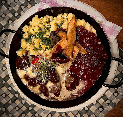 Read moreThis place is a gem and ended up being our best food experience in Salzburg (by far!!!). I recommend making a reservation as they do get busy. The place was lovely! It had a rustic and cozy vibe, which we loved. We started with a pumpkin soup, which I think was exceptionally good. As opposed to most pumpkin soups, it was not sweet forward, but rather savory. I got their beef goulash, which was very comforting, with reach beef flavors. We also went adventurous and got their venison ragout. This was also a dish that was very new to us and a divine combination. Venison was cooked along fruits and presented perfectly: a sweet and savory combination and very seasonal. Even though we were very full at this point, we thought it would be a shame not to try their sweets and we ended up being so glad that we did! Their sweet dumpling with stewed plum was so fantastic that we still talk about it! Overall, the place is a must if you are...