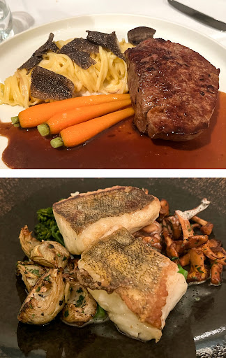 Das Essen: Die Gerichte sind auf absolutem Top-Niveau. Ich hab vor lauter Genuss gar keine Bilder gemacht. Ich hab das 4-Gänge Menü gewählt und auch das austauschen von Vorspeise und Hauptgericht war absolut kein Thema. Vor der Vorspeise kam noch ein Gruß aus der Küche - Butterfisch - mega gut! Vorspeise: Beef Tatar - noch nie gegessen, hier lieben gelernt. Sehr schmackhaft und gut zu essen. Der dazu gereichte Wein war köstlich und es kamen nicht die klassischen Weine auf den Tisch sondern auch die ein oder andere in Vergessenheit geratene Besonderheit. Zwischengang: Languste - könnte eine Mü länger drinnen sein, weil es schon sehr glasig war Hauptgang: Kalbs-Kotlett mit Spargel und Trüffelnudeln. Frisch geriebener schwarzer Trüffel und hier nicht gespart. Das Fleisch war absolut köstlich und butterzart. Nachspeise: Vegane dunkle Schokomousse mit Himbeere, eingelegtem Rhabarbar und Pistanzieneis. Zum Schluss gabs dann noch einen Gruß aus der Küche - Ein toller Abschluss!