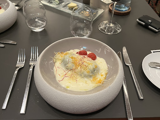 For €90 a person, with only a glass of wine, you expect to get some quality apporaching michelin level. Instead it was a huge dissapointment. The stuff at welcoming was very friendly and helpful. The person who took the order not. I don't know what she wrote down, but after 30 minutes we had our maincourses on the table instead of the starters. Of course when they realised that, they took them back in the kitchen and after some minutes we had the salats which were decent and nice. The duck soup was not fresh and that was foul no1.