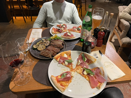 Read moreGreat atmosphere, stylish interior. However, as often mentioned previously: Two main problems: (1) The staff is just a catastrophe - every single waiter was lazy, bored, and particularly unfriendly. Not a single smile, rolling their eyes when one of us changed his wishes during orders, not one inquiry if we liked the food or wanted something else. These people NEVER smile when treating customers. I was totally surprised when some of the waiters suddenly showed super friendly faces and smiled - when one of their colleagues arrived. They really try everything to make you feel uncomfortable! My friend ordered espresso affogato - and they did it with BLUE SMURF ICE-CREAM!! What an insult! (2) The food is mediocre, not good, not bad but visibly cheap ingredients- and heavily overpriced. Small burger for 18,95 Euro (!!), Pizza rucola (with no-taste rucola and strange rectangular pre-produced Parmigiano chips, see photo) 15 Euro. For the pizza and one soft-drink I paid 20 Euro, so they charged 5 Euro for the Soft-drink. And just as reported before: Only cash, no proper bills - I think we all know...