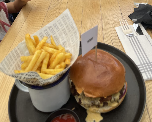 Es gibt nicht nur, aber überwiegend Burger, daneben zum Beispiel verschiedene Salate. In der Bier-Karte fällt das Witbier positiv auf (belgische Brauart). Das gibt es in der Region eher selten. Des Weiteren gibt es eine gute Auswahl an Cocktails. Die Burger sind lecker zubereitet und die Cocktails und hausgemachten Limonaden schmecken gut. Wenn man einmal keine lokale Küche möchte, dann ist dieses Lokal zu empfehlen. Das Servicepersonal hat auf mich einen freundlichen Eindruck gemacht. Wir wurden ohne Ausnahme höflich behandelt. Potentielle Gäste, die sich an der Warteschlange vorbeimogeln wollten, wurden kurz aber deutlich zurückgewiesen. Während der Corona-Pandemie konnte ich beobachten, dass die Impf-Zertifikate konsequent geprüft worden sind. Nicht gefallen haben mir die Toiletten. Die Toilettenschüsseln waren voller Pippi. Desinfektionsmittel in den Toilettenkabinen war nicht vorhanden. Es gab aber zumindest genug Toilettenpapier und der restliche Bereich im WC sah in Ordnung aus.