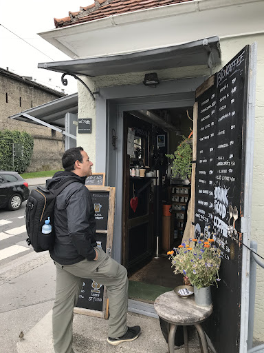 Amazing coffee place at Mozartsteg. Tiny kiosk and you can only sit outside but with good weather and if you are wandering around in Salzburg, go check it out! Yes it is next to a street and yes the chairs are not facing the river but the street. BUT The coffee was very tasty, you can see the fortress and relax for few moments :). In my opinion it is perfect for a small break from whatever you are doing / discovering. We also wanted a chocolate brownie and then the lady (who was very welcoming and friendly) said the brownies are so small today so she just gave us a second...