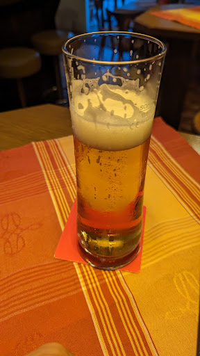 Waiting time was a bit too much, server lady was patient with our lack of language knowledge, beer is quite good but a bit on the pricey restaurant side, schnitzel was good in price, with salad and dipping (13.90€) side dish (fried potatoes was not so generous in quantity, and only one schnitzel is to be expected, but it is enough) Everyone was smoking outside, nonstop like it...