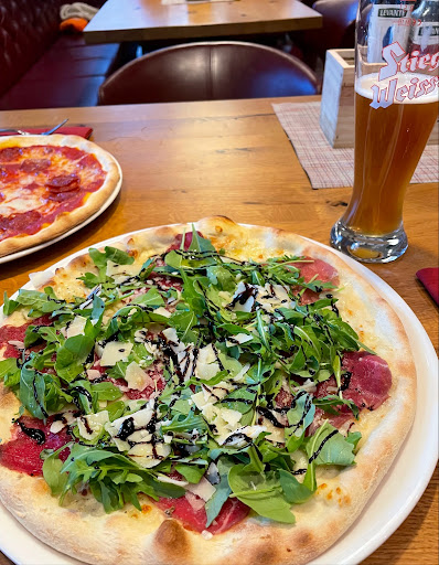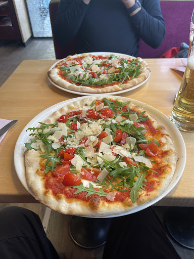 The pizza was okay. Not the greatest I had in Sankt Anton. Ciao ciao is close by and the pizza is far better. We had a below average experience as there were no available tables for two at the front and they wouldn't give us a bigger table. We had to eat at a small back room with other 4 tables. There wasn't much room to walk and you could clearly hear the conversation from the tables next to ours. It got quite difficult to hear my own conversation. The service was good and we were treated very well. But the rest of the experience made us want to leave as soon as we finished eating.