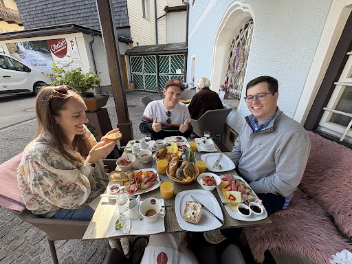 Hallo 😊 Wir wurden bei der ankunft schon erstmal nett begrüßt, es war nur mehr ein tisch frei aber da wir zu 4. Gekommen sind war dieser zu klein. Die netten leute neben uns gaben uns deren tisch da sie nur zu 2. Waren. Wir haben dann bestellt und uns ist aufgefallen es fühlte sich an wie zu hause, wie in einer großen familie. Der SERVICE war AUSGESPROCHEN SUPER. Total nett und locker. Wir hatten eine etwas schwierige bestellung unsrer meinung nach da wir vieles extra dazu wollten, oder eben nicht; das war aufjeden fall kein problem. Es gab kein augenrollen oder blöde blicke sondern nur ein; ja natürlich, sehr gerne, kein problem. Was ich auch super finde da es ja nicht selbstverständlich ist. Essen: Wir haben Gefrühstückt und es war alles perfekt. Nicht zu viel nicht zu wenig. Ich hatte das Bäcker frühstück dass ich nur empfehlen kann. Das Gebäck war sehr gut, Wurst, Käse, Gemüse genau so.