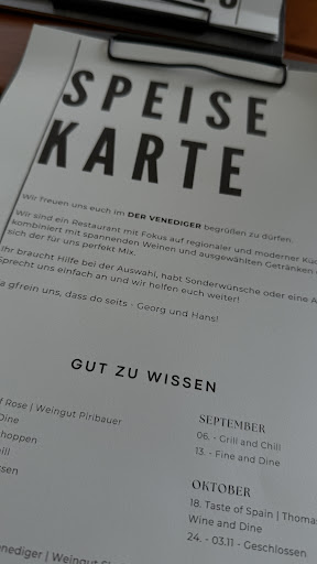 Die Küche begeistert mit einer gelungenen Mischung aus Tradition und Moderne. Besonders der gebeizte Lachs hat mich überzeugt – frisch, kreativ und geschmacklich top. Genauso wie die vegetarischen Gerichte... Ein absolutes Highlight ist das Getränk DER VENEDIGER: erfrischend, perfekt ausbalanciert und einfach ein Muss -auch für 'Nicht-Biertrinker' ;)!