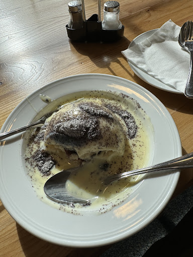 The waiter was so sweet and accommodating, she kept making jokes with us and had a great smile and made us feel welcome. I had the beef goulash and it was so delicious. It came with three fries (😂) and a large Semmelknödel. I’ve honestly been sleeping on the Knödels because this one was really really good. Opened my eyes for how nice Knödels can be.