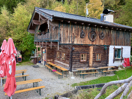 For the not local hikers looking for the trail, we walked up the paved road, Hubstraße, until we hit the Herbert Kranabetter where there is a green dashed trail on Google maps. We followed the green dashed trail west under the ski lifts (red dashed lines) until we found a trailhead of sorts with the Hotel Hahnbaum as a destination. That hotel is right beside this restaurant so hiking to it will get you here! The trail markers note the hike will take around an hour as the start and it took our tired legs 2.5 hours to make it up. It was very beautiful on the way up and even more awesome at the top with some...