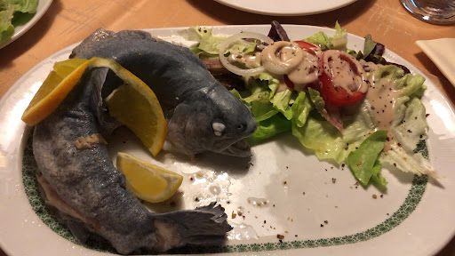 Read moreSo stelle ich mir ein Gasthaus am Land vor. Es gibt 4 Tische und somit Platz für wahrscheinlich 15 Gäste. Geöffnet ist 17-21 Uhr, da nebenbei noch eine Pension geleitet wird. Auf der Speisekarte gibt es hauptsächlich Fisch (Forelle und Sailing) in unterschiedlichen Ausführungen, gegrillt, paniert oder geräuchert. Es wird nach Gewicht des Fisches verrechnet. Große Portion zb €24. Beilagen Petersilie Erdäpfel, Erdäpfel Salat. Als Alternative gibt es Schnitzel von der Pute oder Ochsen Steak und Ochsen Ragout. Der Chef kocht in der Küche und die Chefin serviert. Nur...