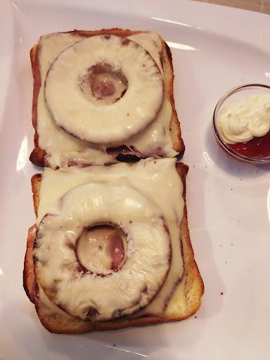 Read moreOi Lads, dnes si zrecenzujeme tuto krásnou restauraci. 😉 Btw hvězdičky bych dal radši 3,5 ale nedá se nic dělat. 😕 Jako první sem si dal Hawaii tousty (foto). Když jsem to četl tak jsem to prostě musel zkusit 😁 ale nechápu kdo ten recept vymyslel protože ananas na toust se moc nehodí a bylo to nic moc. 🤢 Radši si dejte Hamburger (foto) který mají výborný. 🤤 Nebo Špagety alla carbonara. 🤤 Moje sestra měla gulášovku...🤮🤮🤮 Z masa trčely samé trubičky a v guláši bylo spoustu zeleniny což jsem v rakousku viděl poprvé. Takový miniaturní kousek chlebíčku ke guláši donesli až po pěti minutách. 😐 Takže gulash zuppe rozhodně ne! 🤮 Btw docela hnusný čaj. 😐 Číšníci se mi zdáli trošku pomatení 😁 ale byli příjemní. Docela mě štvalo že někteří lidé když skončili lyžovat tak do hotelu procházeli přes restauraci přitom hned vedle byly dveře přímo do lyžárny 🤨 takže vám tam pak v těch lyžácích dupali. No...to bude...