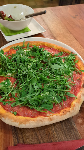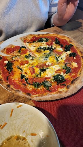 Read moreDie Pizza war ok. Aber nicht ganz so wie ich sie gerne mag. Boden ganz dünn, Tomatensauce nicht abgeschmeckt, restlicher Belag üppig. Rand teilweise tatsächlich verbrannt. Manche mögen es so, ich nicht. Das Service war sehr freundlich und flott. Top. Das Ambiente war sehr dunkel. Das Holz ist alles dunkelbraun, fast schwarz gestrichen. Die ganz schwache Beleuchtung (3-5 Watt LED Lampen) unterstreichen dies noch zusätzlich. Ist mir persönlich beim Essen zu dunkel. Für Disco passt sowas. Dennoch eine Empfehlung an jeden selbst mal die Pizza...