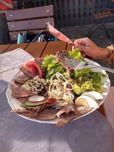 Read moreWir waren vorher noch nie dort und sind dort hin eingeladen worden. Der erste Eindruck war recht nett, wirkte aber klein. Wir sind dann gleich auf die Terrasse gegangen wo unser Tisch gerade vorbereitet wurde. Der Ausblick ist sehr schön und alles lädt zum verweilen ein. Die Auswahl an Speisen ist gut, die Preise sind Zeitgemäß, die Portionen absolut ausreichend. Die Aufstriche sind richtig gut und es gibt sogar einen eigenen vegetarischen Teller. Das Personal (der Kellner) ist zwar ein wenig schusselig, aber sehr freundlich und nett. Der Indoorbereich ist aber richtig groß was mir erst beim gehen aufgefallen ist. Alles in allem aber...