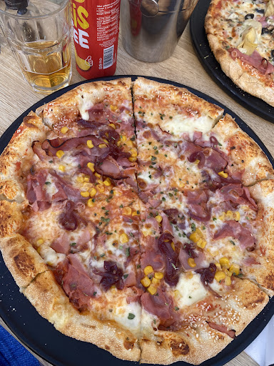 Die Pizza mit dem Mais und den Zwiebel haben wir mit Käserand bestellt und ihr eine 8,5/10 gegeben. Es war vom Geschmack her zu vergleichen mit anderen Pizzerien aber doch einzigartig. Der Käserand hätte dicker gefüllt sein können, aber ist trotzdem empfehlenswert.