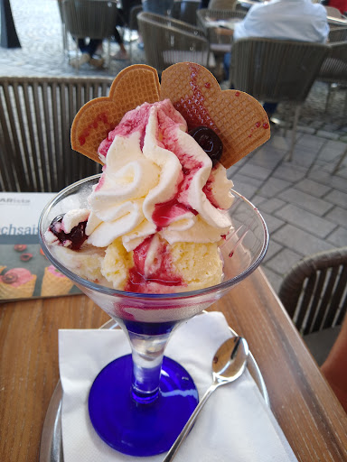 Read moreIm Rahmen unseres Besuches der Landesgartenschau waren wir hier, um ein leckeres Eis zu essen und das Ambiente zu genießen. Das Eis - als wir es dann endlich hatten - war lecker, das Ambiente auf der hinteren Außenterrasse war toll. Katastrophal war die Bedienung, die nicht nur völlig überfordert war (außer uns gab es noch zwei weitere Tische, die besetzt waren), sondern dazu noch arrogant. Die einfache Frage, welche Sorten Eis es als Sorbet gibt, hat zu Augenrollen und der Erklärung geführt, dass es Sorbet nur mit Prosecco gäbe (in der Karte gab es ein Getränk, welches den Namen Sorbet trägt). Dass man auch Eis ohne Milch Sorbet nennt, war der Dame völlig unbekannt und ihre genervte Art, uns das erklären zu wollen, hat zu einigem Unmut geführt. Auf die kalten Getränke haben wir eine Viertelstunde gewartet. Dann sind wir losgegangen und haben uns diese selbst an der Theke abgeholt. Das Eis brauchte noch weitere zehn Minuten. Den Gästen an den Nachbartischen erging es noch schlimmer. Einige Gäste, die im Laufe der Zeit hinzu gekommen sind, haben das Restaurant unverrichteter Dinge wieder...