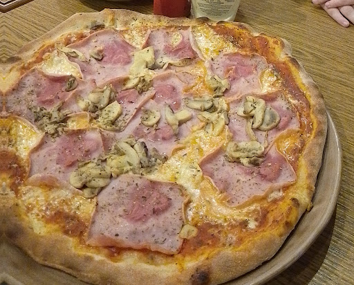 Ich hatte eine Pizza Capriccosa in der Riesenvariante, für das das Lokal landauf, landab bekannt ist. Wie erwartet hats super geschmeckt.