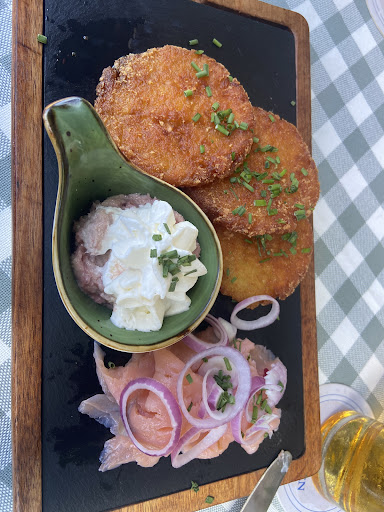 Wir haben gestern zum ersten Mal hier gegessen, da unser Stammlokal leider keine Plätze mehr frei hatte. Das Gasthaus sieht von innen eher wie ein uraltes Bauernhaus aus (mir hat's gefallen!), Ich fand es sehr cool; das wird aber sicherlich nicht jedermanns Geschmack sein. Das Essen war extrem gut!! Alles wurde frisch zubereitet, da waren wir mehr als positiv überrascht. Die Preise waren auch vollkommen in Ordnung. Ich ziehe nur einen Punkt ab, weil sich ein Hund im gesamten Haus, auch wo die Gäste speisen, frei bewegt. Ich liebe Hunde und hab den auch gestreichelt, er hat sich brav neben unserem Tisch gelegt und uns grundsätzlich in Ruhe gelassen; ABER es gibt ja auch Menschen die das nicht möchten, die Angst haben, allergisch sind etc.. oder wenn man seinen eigenen Hund dabei hat, der auf andere Hunde reagiert.. deshalb erwähne ich es - falls jemand seinen Hund mitnehmen möchte, Vorsicht. Da finde ich es etwas schade, dass man die Gäste nicht darauf hinweist 🫤. Zum Schluss ist mir auch etwas unangenehmes passiert, habe jetzt lange überlegt ob ich es dazu schreibe.. mache es jetzt, da Leute die keine Ahnung von Hunden haben in so einer Situation wahrscheinlich Panik bekommen würden: zum Schluss habe ich meine Jacke angezogen (die habe ich täglich an, also riecht sie auch nach unserem Hund), die Hündin vom Lokal hat es wahrgenommen und fing an an meinem linken Arm zu knabbern. Sie hat mich nicht gebissen, aber faktisch meinen Arm ins Maul genommen und leicht drauf gekaut. Ich bin dann aufgestanden und sie hat mich angesprungen und weiterhin versucht meinen Arm oder Hand zu erwischen. Sie stand quasi auf die Hinterläufe und hat dann mit ihren Vorderläufen versucht meine Jacke bzw. Ärmel festzuhalten und kratze dabei. Mir wurde das alles zu viel und habe sie mit einem leichten Schubs nach hinten korrigiert und ihr die Grenze gezeigt. Sie hat mich in Ruhe gelassen und wir sind gegangen. Ich bin relativ ruhig geblieben, ich stelle mir aber grad eine Person vor die panische Angst vor Hunde hat.. also in diesem Sinne, seid gewarnt. Sonst war alles...