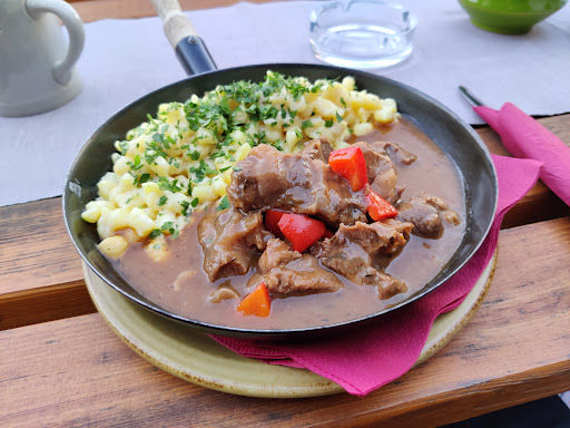Ich bin ein einfacher Mann, ich liebe Bier, ich liebe Fleisch. Als Norddeutscher war ich mir zuerst unsicher, was sich hinter "Bierfleisch" verbirgt. Die freundliche Bedienung erläuterte mir, dass es ähnlich wie Gulasch sei.