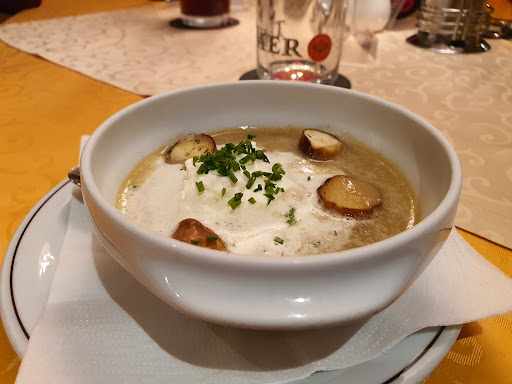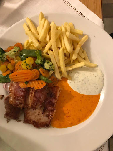 Read moreWe hadden niet gereserveerd (dinsdagavond in hoogseizoen) maar konden toch terecht met vier volwassenen en twee kinderen. Best ruime keuze op menukaart, ook de (standaard) kindergerechten. Een oudere man (manager) kwam te snel vragen wat we wilden bestellen, en kwam ook te snel terug toen we vroegen om nog wat tijd. Gehaast en drammerig. Het duurde vervolgens vrij lang voor het eten kwam. Het eten was prima, niet heel bijzonder. Ruime porties. De nudeln waren lekker (eerste kennismaking met dit gerecht), de groene salade die erbij hoorde werd helaas vergeten maar kwam na vragen alsnog. Dressing erg waterig. Borden werden zeer snel na laatste hap weggeruimd door de oudere man met commentaar op de borden die niet leeg waren (!!) Er was enkel wat spatzle over? Hij zei dat we een kleine portie hadden moeten vragen. De dame die ons bediende was zeer hartelijk, ook voor de kinderen en werkte hard. Helaas werd zij door haar baas (de oudere man) niet vriendelijk behandeld. Toen we vroegen om kaart voor dessert kwam hij met de rekening. Hij kwam warrig en slechthorend over. Later alsnog kaart ontvangen en twee desserts besteld, daarop moeten we opnieuw lang wachten. Toen we daarna wilden afrekenen nam hij alle items op de rekening met ons door en leverde commentaar ‘niet braaf opgegeten’ bij de gerechten waarvan de borden niet helemaal leeg waren. Misschien was het als grapje bedoeld? Voelde toch onprettig. We hadden een gezellig avond, prijs-kwaliteit was prima, maar gaan volgende keer toch ergens...