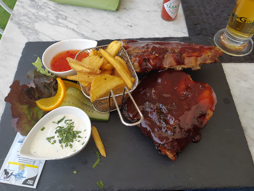 Food was okay, I had a Kräftige Rinderbrühe soup which is normally very good in Austria, but pretty mediocre and tasteless here. I also had some BBQ ribs which I would definitely recommend giving a try.