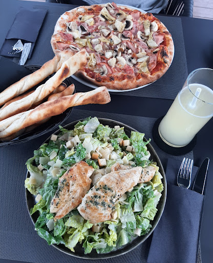 Read moreAn sich ein schickes Lokal, wir wurden jedoch gar nicht empfangen und haben nur merkwürdige Blicke zugeworfen bekommen, bis wir dann endlich einen Tisch bekommen haben. Viel war nicht los, weswegen ich dieses Verhalten nicht verstanden habe. Wir haben einmal eine Pizza Tonno bestellt (war ne 6/10), einmal ein Caesar Salad (3/10 da das Dressing nach fertigem abgepacktem Dressing geschmeckt hat) und Tagliatelle mit Garnelen die leider sehr enttäuschend waren… Die Nudeln schwammen in der fertig Knorr-Tomatensaucen-Mischung und die Garnelen waren auch nur semi. Insgesamt 57€ ausgegeben, was im Nachgang sehr schmerzhaft war. Hervorheben möchte ich die Apfelschorle, die eine 10/10 war :) Macht euch gerne euer eigenes Bild, denn Geschmäcker sind bekanntlich...