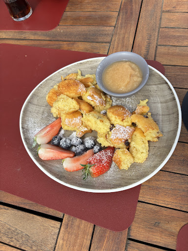 Read moreWir haben zu zweit Abend gegessen. Schön war, dass es keine 5 Gänge sein mussten, sondern man auch einzelne Gänge wählen konnte. Leider war sehr viel aus der Dose/Eimer. Z. B. vom Salatbuffet die fertigen Salate, sowie sehr matschiger Brokkoli und Kartoffeln aus dem Glas als Beilage zum Hauptgericht. Lachs und Zitronensoße waren ok, Penne Arrabiata auch. Dafür war der Kaiserschmarrn garantiert nicht frisch und auch kein echter Kaiserschmarrn. Man konnte alles essen, aber es war eben nicht lecker, und von der Qualität her eines Restaurants nicht angemessen. Für den Preis bekommt man anderswo besseres Essen. Service war nett und bemüht, das Erlebnis auszugleichen. Aber während des Essens hat keiner vorbei geschaut und gefragt, ob...