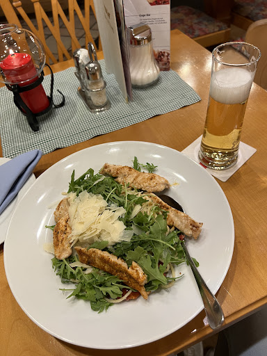 Read more2 x dort gegessen. Essen war immer super lecker. Junge sehr nette, hübsche und freundliche Bedienung. Waren Wandergruppe mit 8 Männer. 6 davon haben Grüner Veltliner Flaschenwein getrunken zu je 19 Euro. Nach 2 Flaschen war er leider nicht mehr vorhanden. Die 6 armen Wanderer mussten dann leider den Wein für 34 Euro trinken. Zu bezahlen kam dann dann eine 2-Meter-Mann. Als wir ihm mitteilten, dass es wohl nicht sein kann das ein solches zentral gelegenes Super-grosses Lokal nur 2 Flaschen von dem günstigen Wein vorrätig hat hat er nur gegrinst. Am 2. Tag gab es den plötzlich wieder 2 Flaschen von dem günstigen Wein. Als wir den Oberkellner konfrontierten. meinte er er kann nichts dafür aber er handle auf Anweisung von oben. Dafür gab es am nächsten Tag das Tagesessen "Spare-ribbs" nicht mehr. (kann wegen der dem großen Lokal und der starken Nachfrage ja vorkommen) Aber das hätte er uns gleich bei der Bestellung sagen können oder vorab den Tasgesessenzettel entfernen können. Als ich als offenen Wein ein Glas Rotwein o,2 Liter für 3, 60 Euro bestellte, wurde mit mittgeteilt, dass dieser leider ausgetrunken sei. Ich solle doch den deutlich besseren Wein 0,125 Euro für 4,80 Euro trinken. So...