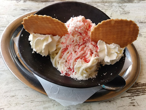 Die Kugel Eis mehr hätten wir nicht gebraucht weil meine Kinder und ich das gar nicht Essen konnten und wenn, dann sollen sie das drinnen auch anschreiben, dass draußen andere Preise gelten! Es gibt nämlich draußen keine Speisekarte, nur einen QR-Code und da sind die Preise so winzig, dass man auf die nicht mehr achtet, wenn man eh bereits vorher drinnen die Preise gecheckt hat. Dem Cafe Eiszeit wird es egal sein, aber unser Eis essen wir...