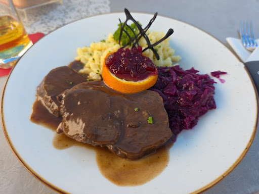 Read moreSehr schade, sind mit dem Fahrrad an diesem Lokal vorbeigekommen und wollten etwas essen und trinken. Um 18:45 Uhr kam der Kellner zu uns an den Tisch und erklärte uns dass wir leider nichts zu essen bekommen könnten, da für 19 Uhr 30 Personen Essen reserviert hätten. Das war sehr schade wir sind dann sofort weiter gefahren und haben nur 1 km entfernt das nächste Lokal gefunden in dem eine Kellnerin 45 Gäste gleichzeitig bewertete wir brauchten nicht warten haben alles in einer wunderbaren Qualität...