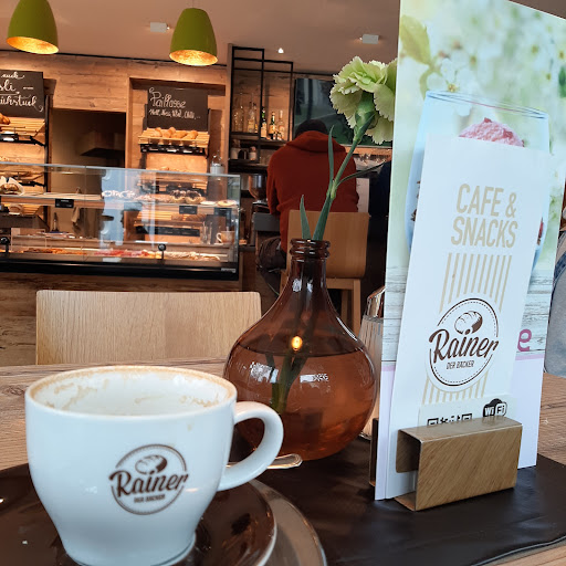Extrem schöne Bilder da ist es wirklich so schön ..die sind schon um 7.00 morgens gut drauf tolles Ambiente guter Cafe grossartige Kuchenkreationen a guats Brot frisch gekauftes Bier tolle Sommerdrinks wundervolle Terrasse innen klein aber fein feiner Treffpunkt im Alltag und Frühstücken bei Rainer ist bereits die schönste Nebensache der Welt das müsst ihr selbst erkunden ein richtiger Bäckerladen und Cafe in einem ja ein harmonischer Famielienbetrieb wo alle zusammen halten und mit viel Liebe zum Beruf und zu den Menschen für uns da sind da gibt es noch die Feruenpension Rainer der klane Laden wo an der Tür noch die Glocke bimmelt das herrlich gestaltete Schaufenster die Deko macht die Junge Chefin selber und Talente Reihen sich zu Talenten die schön beschrifteten Tafeln im Geschäft das aufmerksame Team und nette Leute ziehen nette Leute an da gäb es viel zu erzählen vielleicht treffen wir uns mal beim Rainer Cafe dann erzähl i mehr ...was mir da...